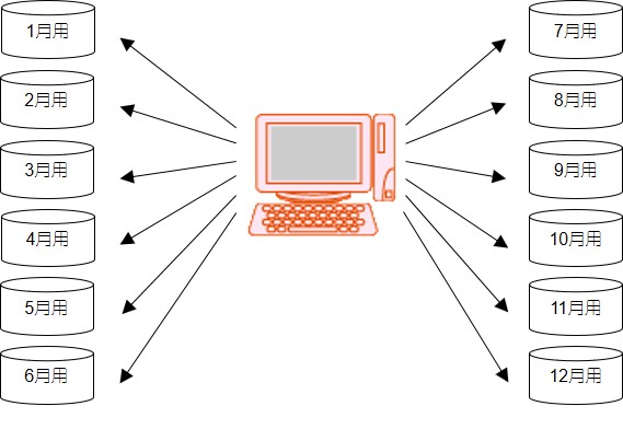 月ごとのバックアップデータ(1月用、2月用など)を用意し、毎月バックアップを実行する