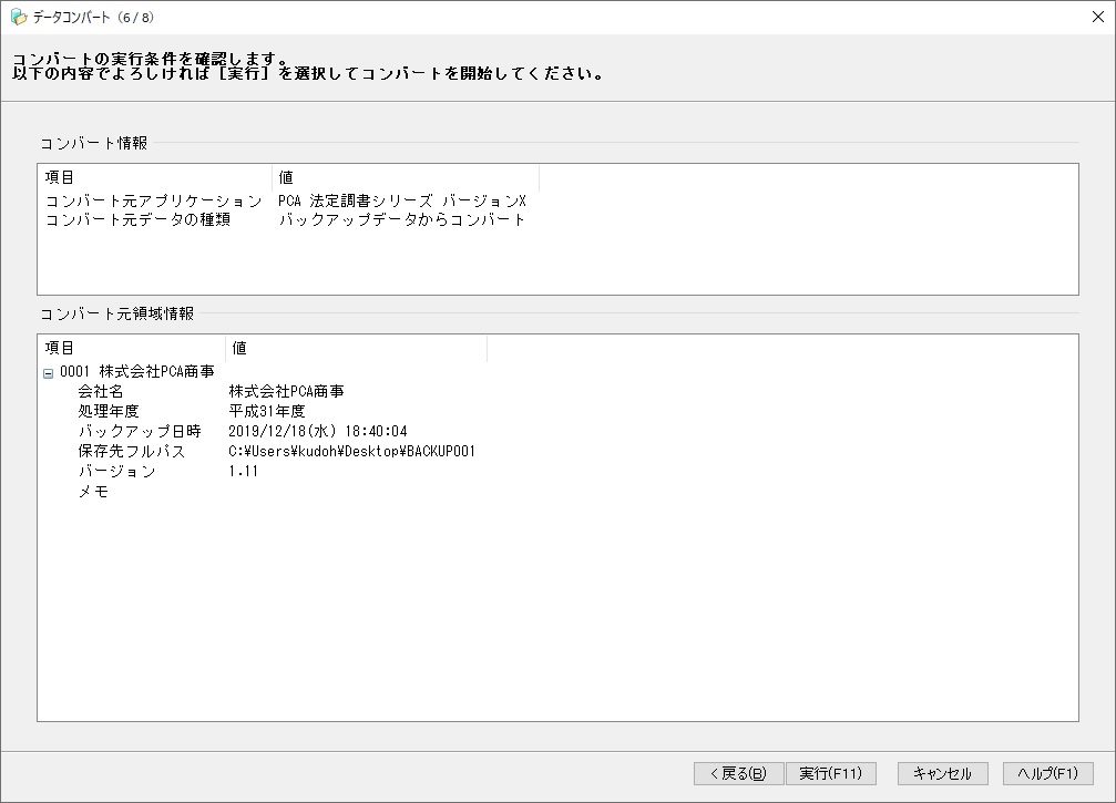 【バックアップデータからコンバートの場合】