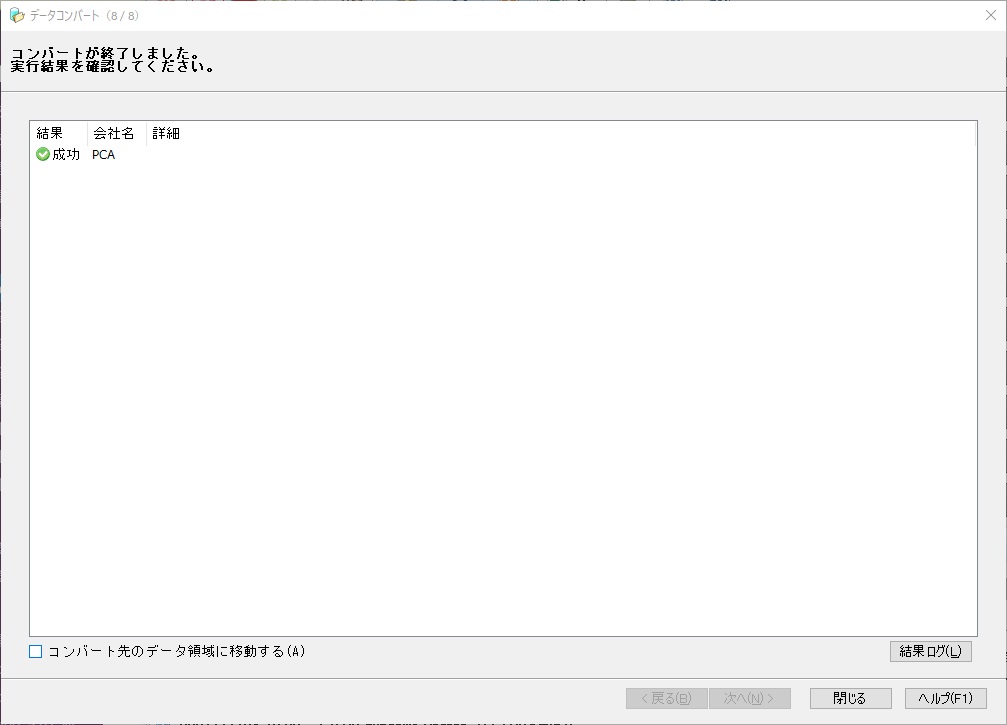 一部のデータについては、内容を変換してコンバートされますので、[結果ログ]ボタンをクリックして、ログを確認してください。