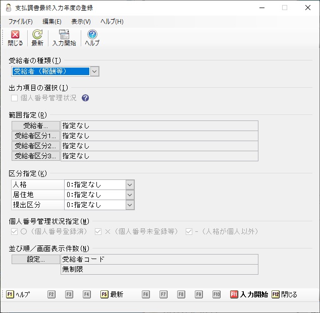 指定されたマスター(支払調書)の種類について、受給者ごとに支払調書の最終入力年度を管理します。