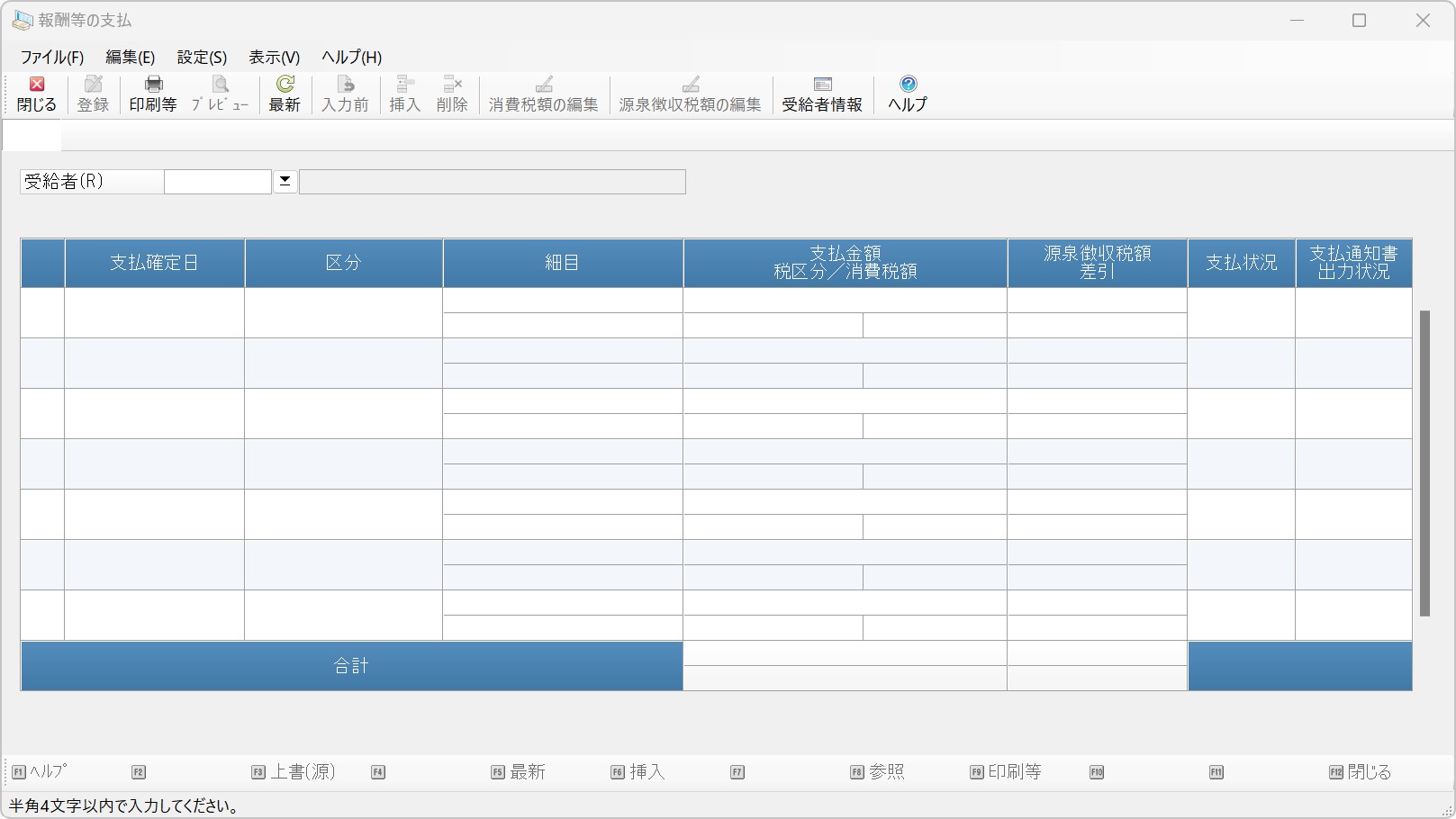 受給者ごとに「報酬等の支払調書」の元データとなる支払明細を入力します。