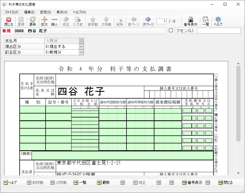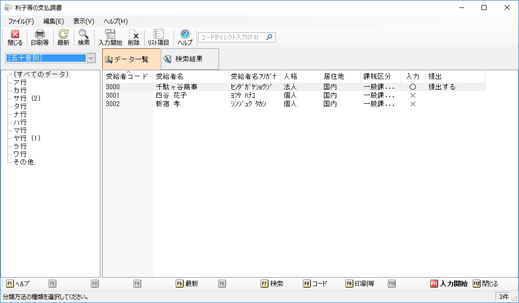 受給者(利子等)ごとの『利子等の支払調書』を登録・出力します。