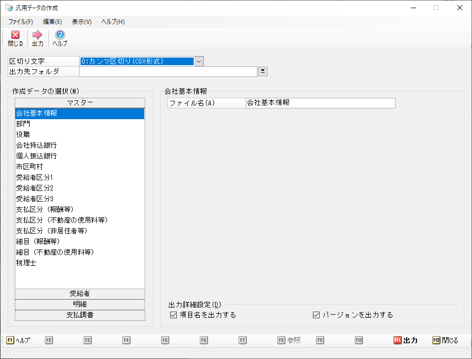 マスター等のデータを他の表計算ソフトやデータベースソフトでご利用になれるように、テキストデータとして作成します。