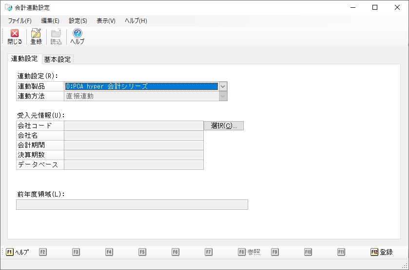 ※ メニュー「前準備」-「会社基本情報の登録」-「設定」タブの会計連動で「会計データの受入」を選択した場合