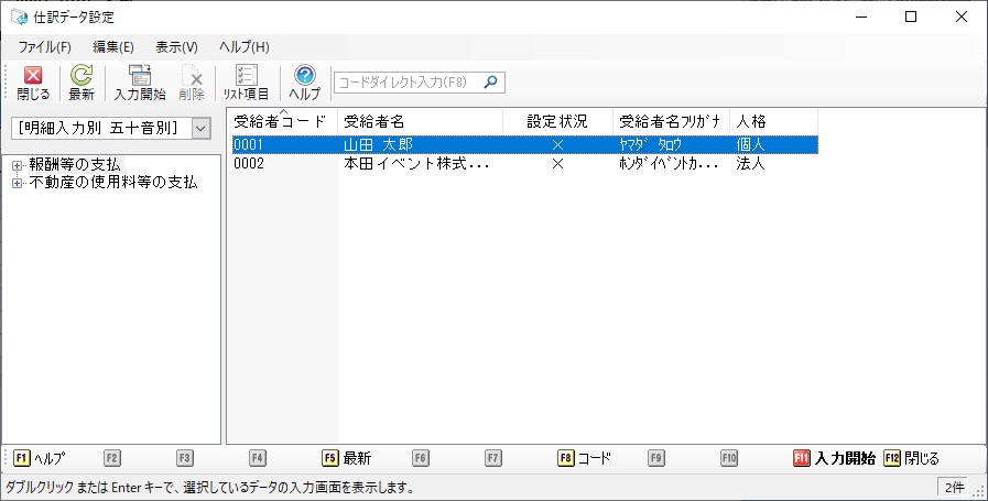 受給者(報酬等)、および受給者(不動産等)が1件も登録されていない場合