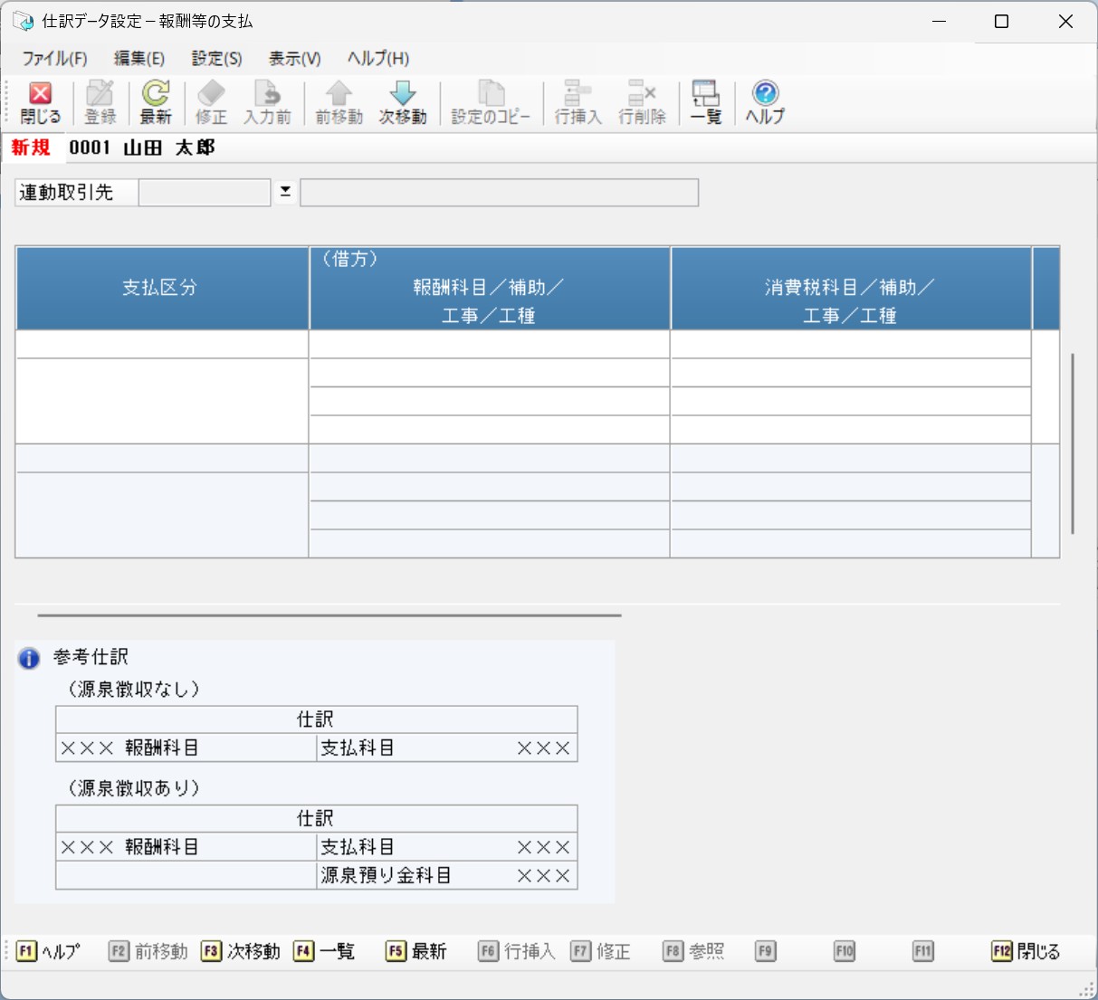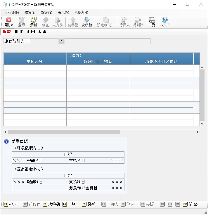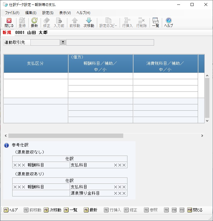 当処理を起動する前にあらかじめ会計連動設定(仕訳作成)で設定しておく必要があります。 -