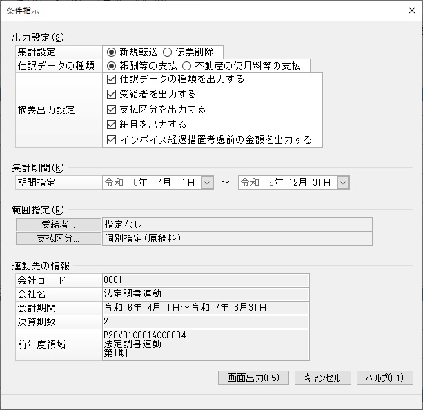 連動先の会計期間が法定調書の処理年度と1日も重ならない場合