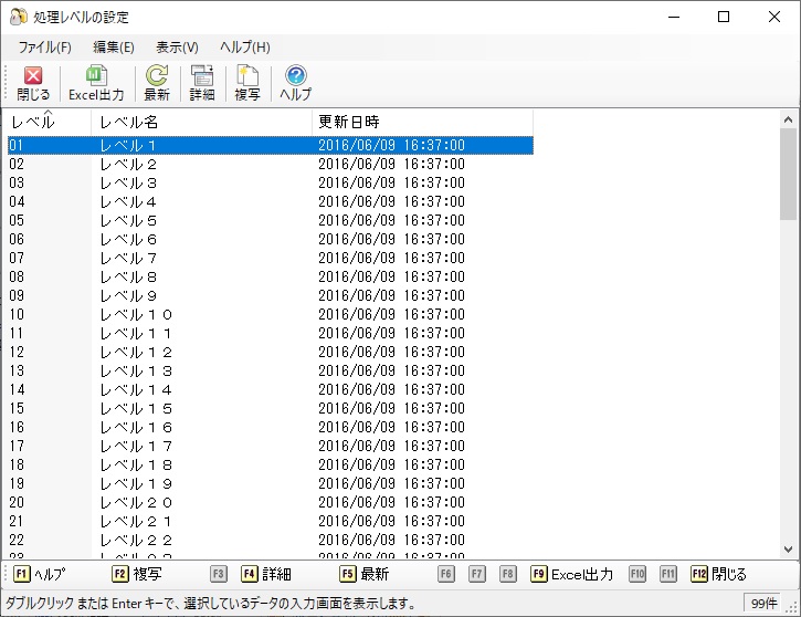 処理レベルの設定