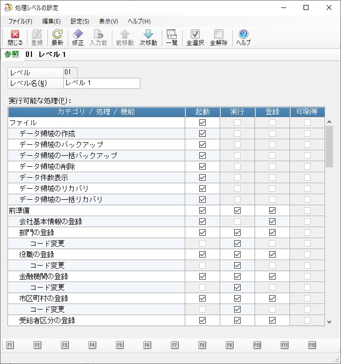 ※ 処理レベルが「領域責任者」ではない一般ユーザーがログオンした場合、本処理はメニューにも表示されません。