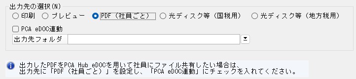 出力先の選択で「印刷」「プレビュー」「PDF」を選択した場合に設定します。