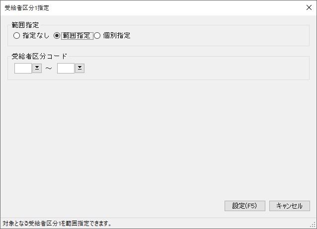ボタンをクリックすると、「受給者区分1~3指定」画面が表示されますので、「範囲指定」、「個別指定」を選択します。
