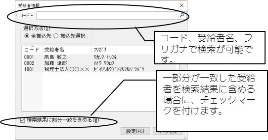 ボタンをクリックすると、「受給者情報」画面が表示されますので、「全振込先」、「振込先選択」を選択します。