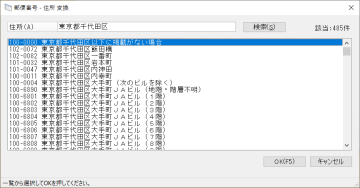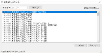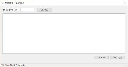 (1) 郵便番号欄のボタンをクリックすると、「郵便番号-住所変換」画面が表示されます。