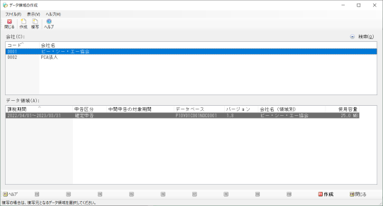 メニューの「ファイル」-「データ領域の作成」を選択すると、以下のような画面が表示されます。