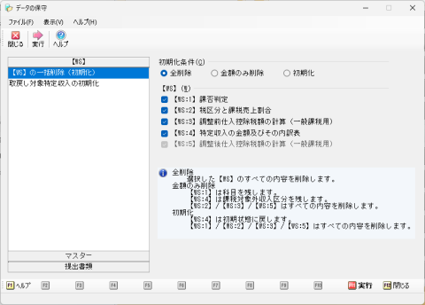 「前準備」-「特例計算(売上/仕入)情報の登録」で設定した内容を初期化したい |