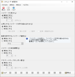 メニューの「セキュリティ」-「システムユーザー管理設定」を選択すると、以下のような画面が表示されます。