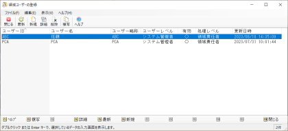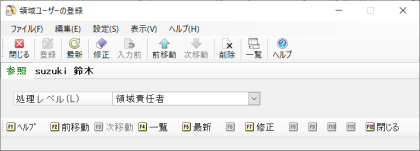 メニューの「セキュリティ」-「領域ユーザーの登録」を選択すると、以下のような画面が表示されます。