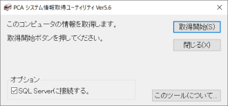 (3) 設定画面が表示されますので、「SQL Serverに接続する」にチェックマークを付けて、[取得開始]ボタンをクリックします。