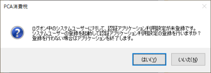 必須:製品起動時に認証設定を促す画面が表示されます。「システムユーザーの登録」で認証アプリケーション設定を登録しない場合には、起動ができなくなります。