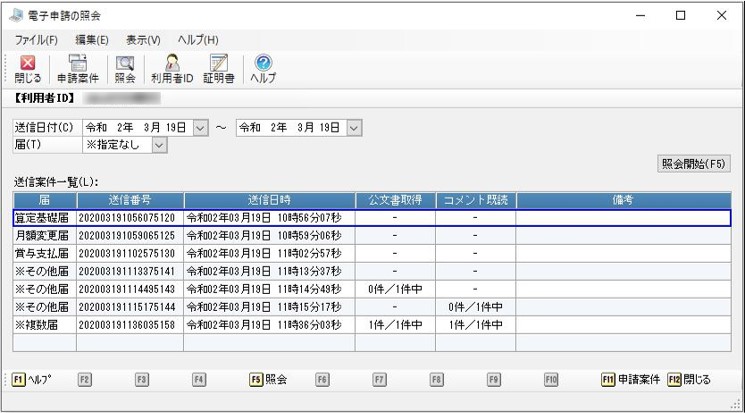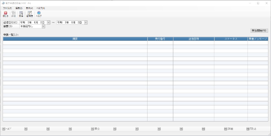(2) メイン画面が表示されますので、送信日付の範囲と届を指定し[照会開始]ボタンをクリックします。