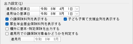 給与、賞与それぞれの出力する月別の期間を指定します。 |