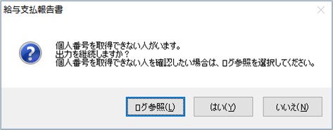 給与ソフトとマイナンバー管理ツールで情報が一致していない可能性があります。 メッセージの回避方法については、サポートセンターまでご連絡ください。 |