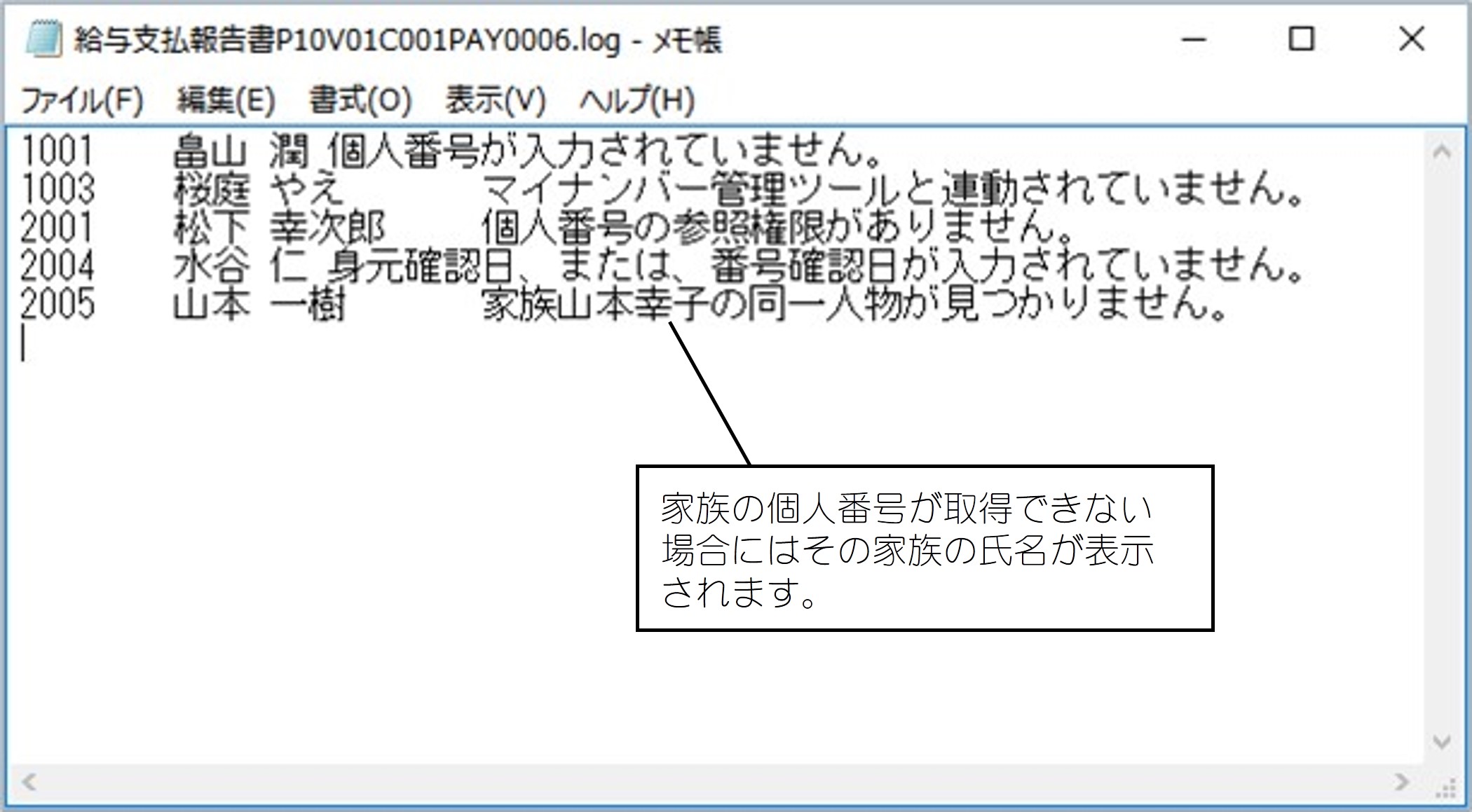 ※ 個人番号を取得できない人の個人番号欄は空白で表示されます。