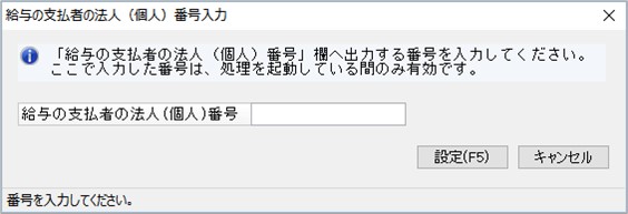 ※ 入力した番号は、処理を起動している間のみ有効です。一度処理を終了した場合や他の個人番号の出力が必要な処理を起動した場合は、再度入力が必要です。