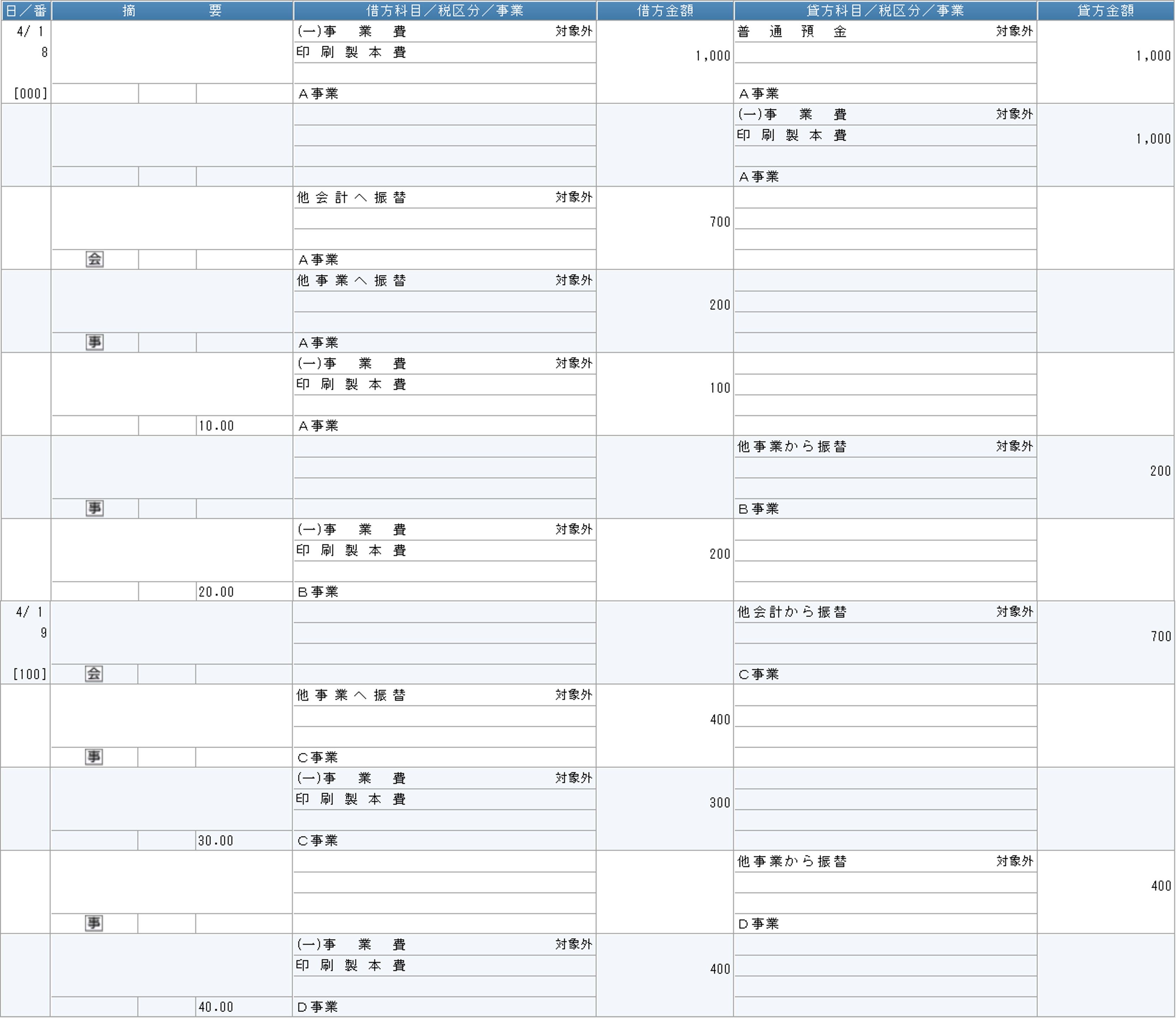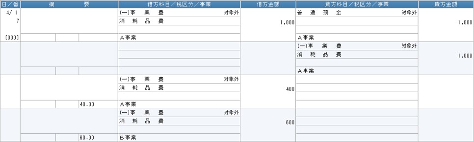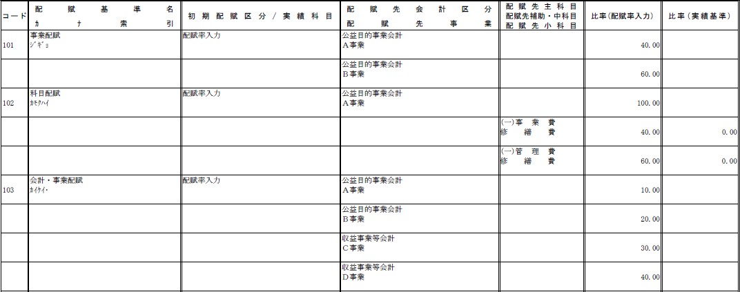(3) 配賦基準:103の場合(仮科目:事業間は使用しない)