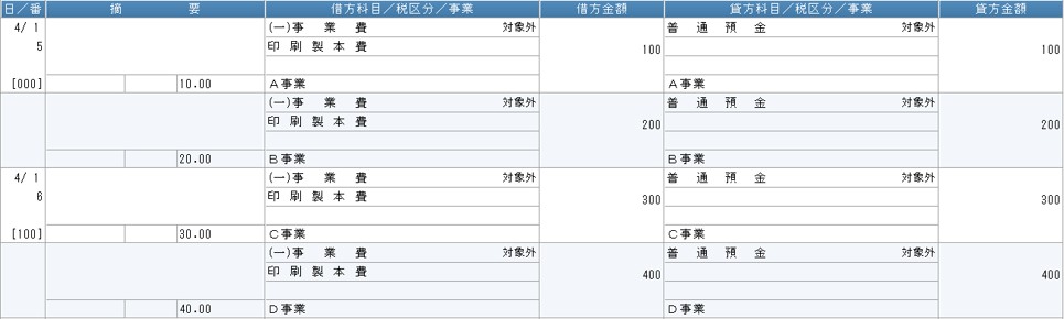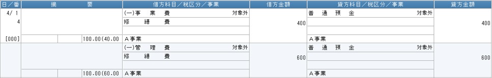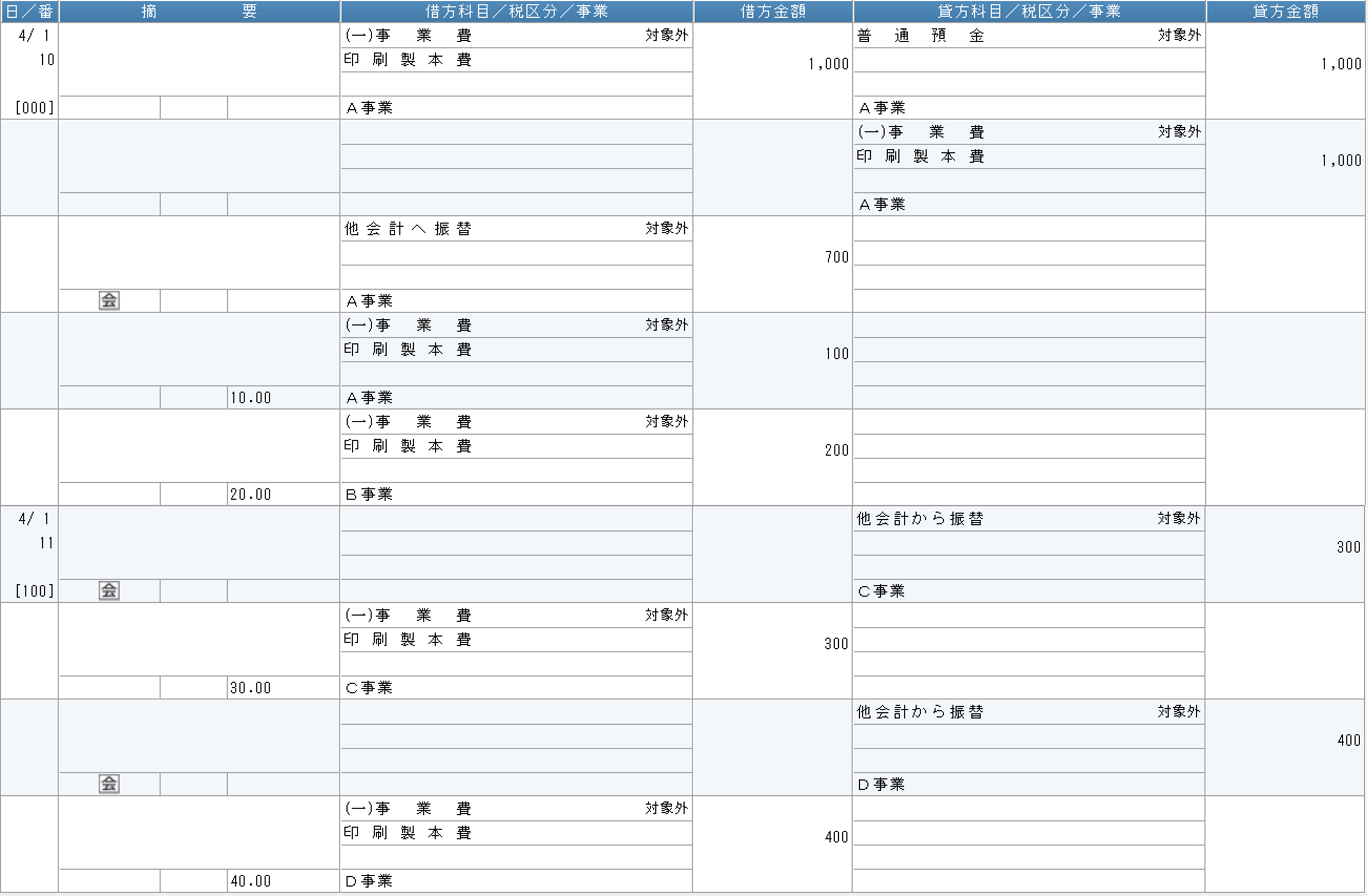 ※ 一括配賦入力は、期間指定して集計した金額を配賦する点を除けば、基本的に直接配賦入力と同じなので、ここでは説明を省略します。