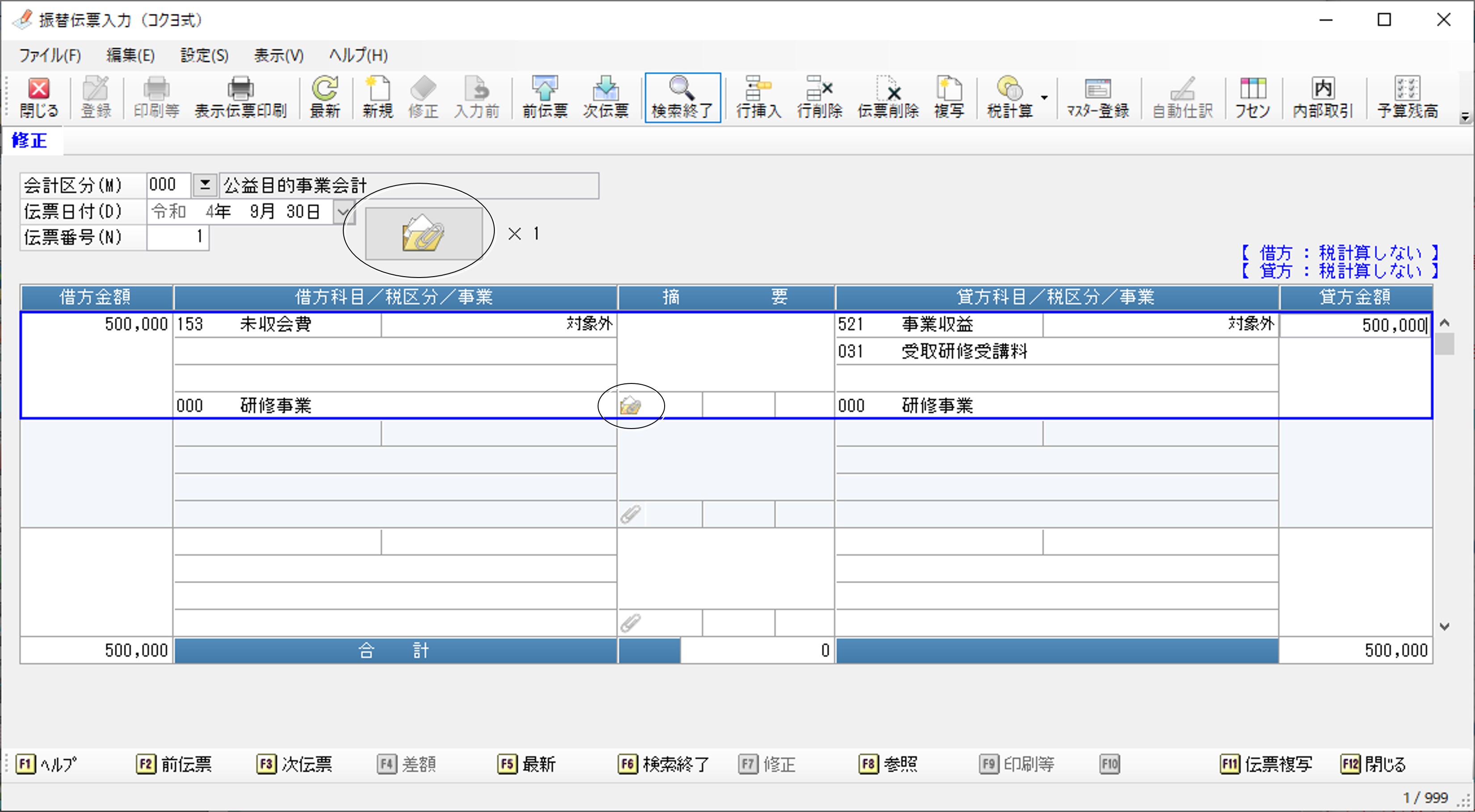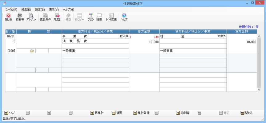 データ入力 : 仕訳検索修正、仕訳の一括変更