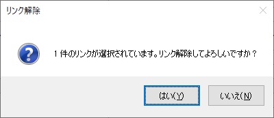 (2) リンクの解除を確認する画面が表示されますので、解除する場合は、[はい]ボタンをクリックします。[いいえ]ボタンをクリックすると、解除を中止します。