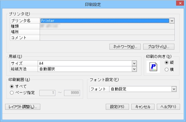 「印刷設定」画面が表示され、プリンタや用紙サイズの設定を行うことができます。
