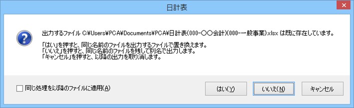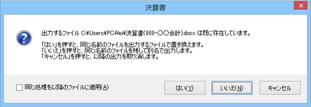 • いいえ : ファイル名にカッコ付きの数字((2)など)を付けて出力します。