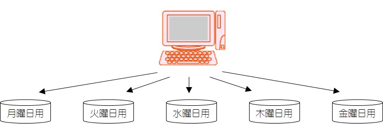 曜日ごとのバックアップデータ(月曜日用、火曜日用など)を用意し、毎日バックアップを実行する