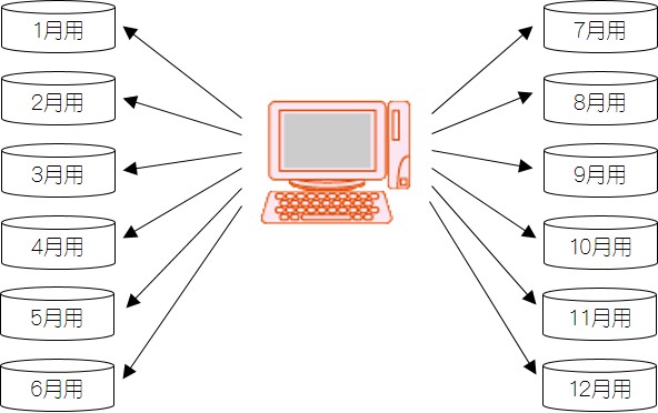 月ごとのバックアップデータ(1月用、2月用など)を用意し、毎月バックアップを実行する