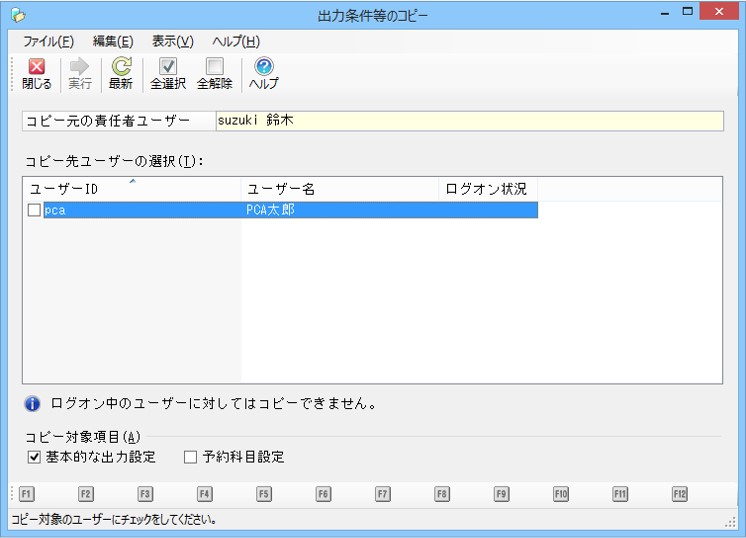 本処理を起動した「領域責任者」のユーザーが設定した出力条件指示の内容等を他のユーザーにコピーして設定します。