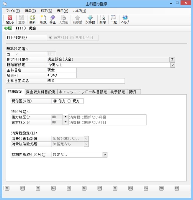 主科目、見出し科目の名称・コードの登録、変更を行います。