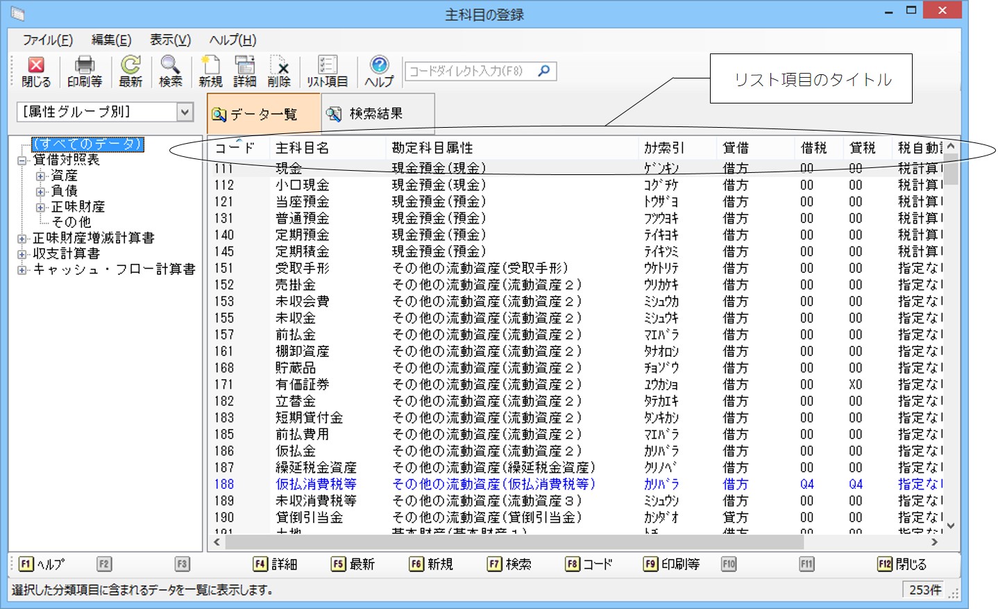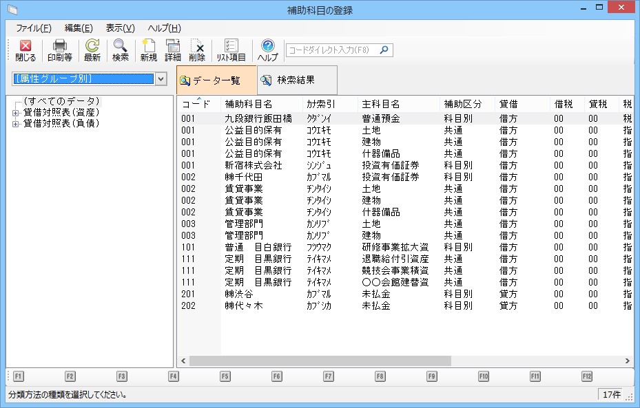 • 「前準備」-「科目の登録」-「補助科目の登録」のマスター項目