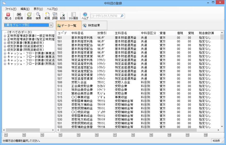 • 「前準備」-「科目の登録」-「中科目の登録」のマスター項目