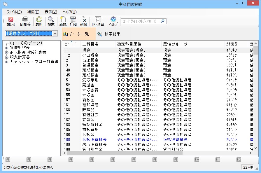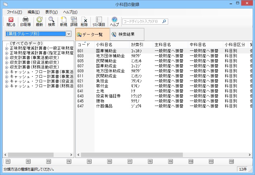 見出し科目、中科目、小科目と組み合わせる事で5階層までの科目体系を作成する事が可能です。