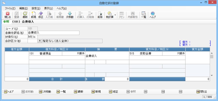 2. 自動仕訳マスター(メニューの「前準備」-「自動仕訳の登録」)