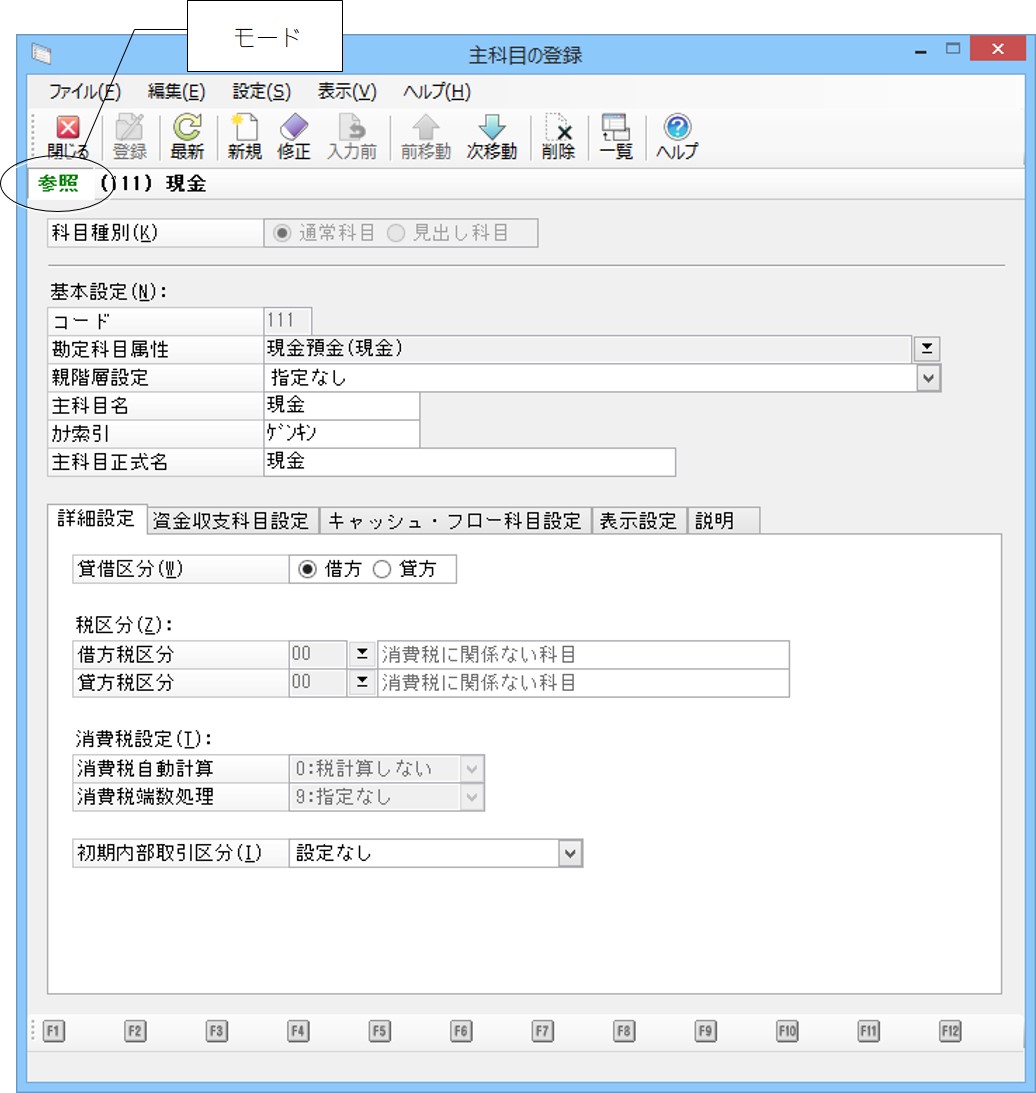 • 参照:登録済みのマスターを参照している状態です。各項目にフォーカスを移動すると、修正モードに移行します。