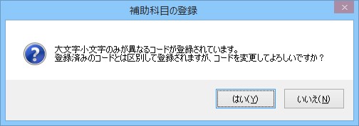 • コード変更の場合:変更を確認する画面が表示されます。コードを変更する場合は、[はい]ボタンをクリックします。