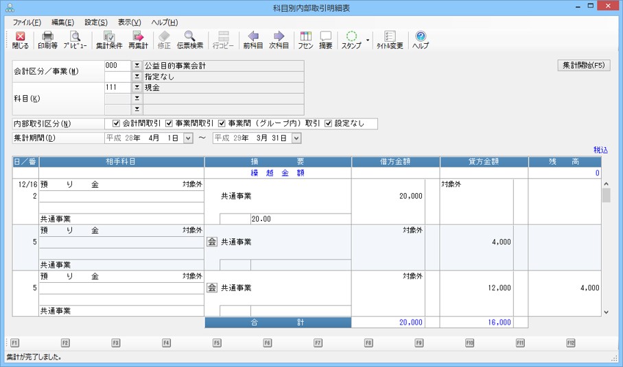 科目別内部取引明細表