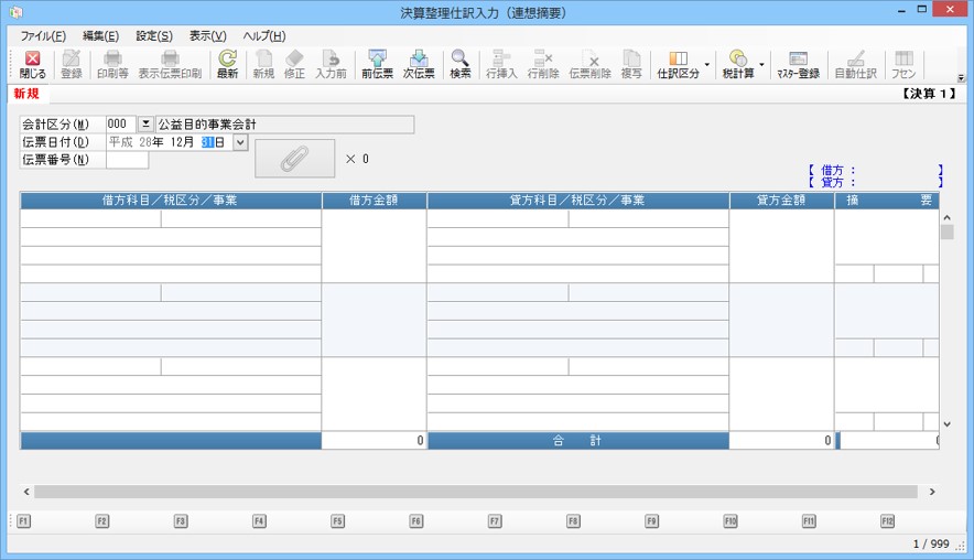 1伝票に登録できるのは、最大999仕訳です。