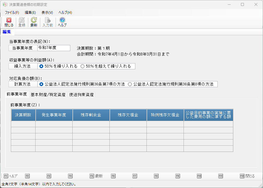 決算関連書類の初期設定
