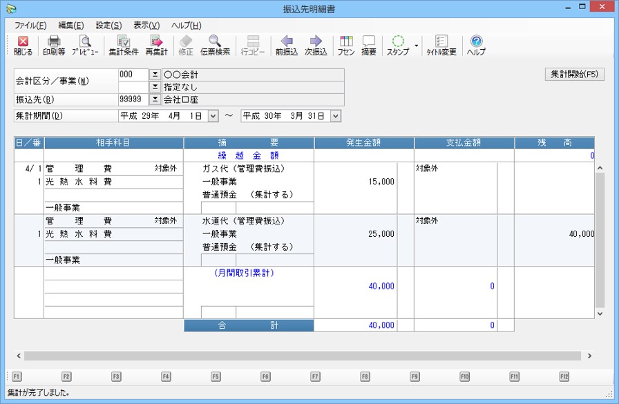 3. 指示した期間の発生金額のみ集計します。残高は集計されません。