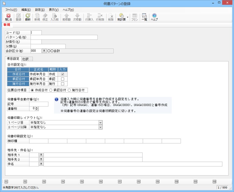 伺書パターンの登録