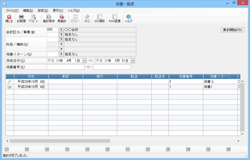 メニューの「伺書」-「伺書一覧表」を選択すると、以下のような画面が表示されます。